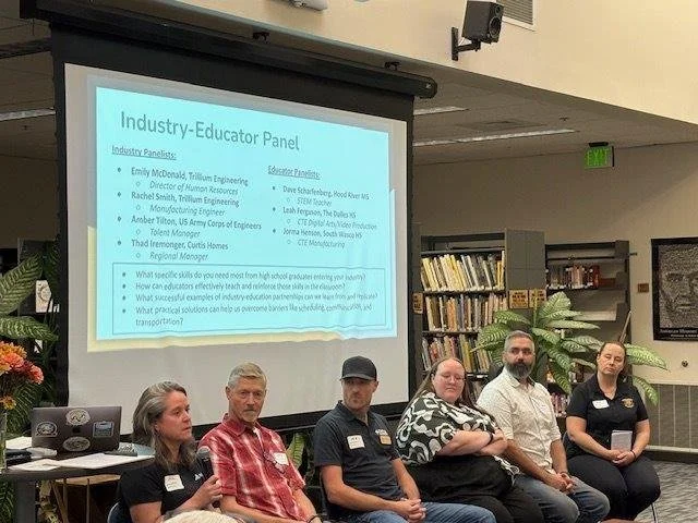 “This emphasis on relationship and community-building is what makes the CTE Advisory Committee so powerful”, shared Jorma Henson, CTE Manufacturing Teacher from South Wasco County High School. He adds, “It’s important because when educators and industry professionals come together, they’re aligning classroom instruction with real-world relevance. These partnerships foster mutual understanding, spark innovation, and ensure that both education and industry are growing together, not apart. It’s a model that strengthens student outcomes and builds a more connected, future-ready workforce.”