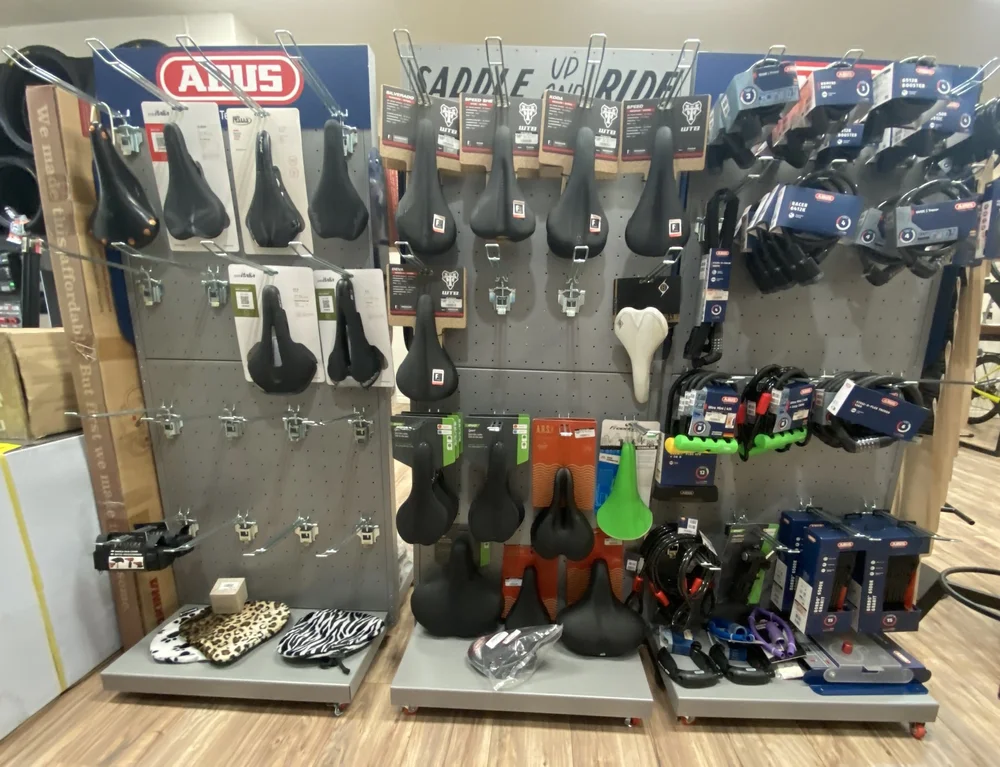 The store carries a growing lineup of accessories — fenders, helmets, tools, bags, racks, saddles, lubricants — and more bikes than ever before. Lepinski recently added Marin to his brand list, expanding offerings in the mid-range and kids’ mountain bike categories. He continues to stock Fuji, SE, Breezer and others, with a mix of new and used options, trade-ins and consignments. “I always seemed to bring in more and more products,” he said. “I didn’t know where I was going to put it when I ordered it, but I figured it out.”