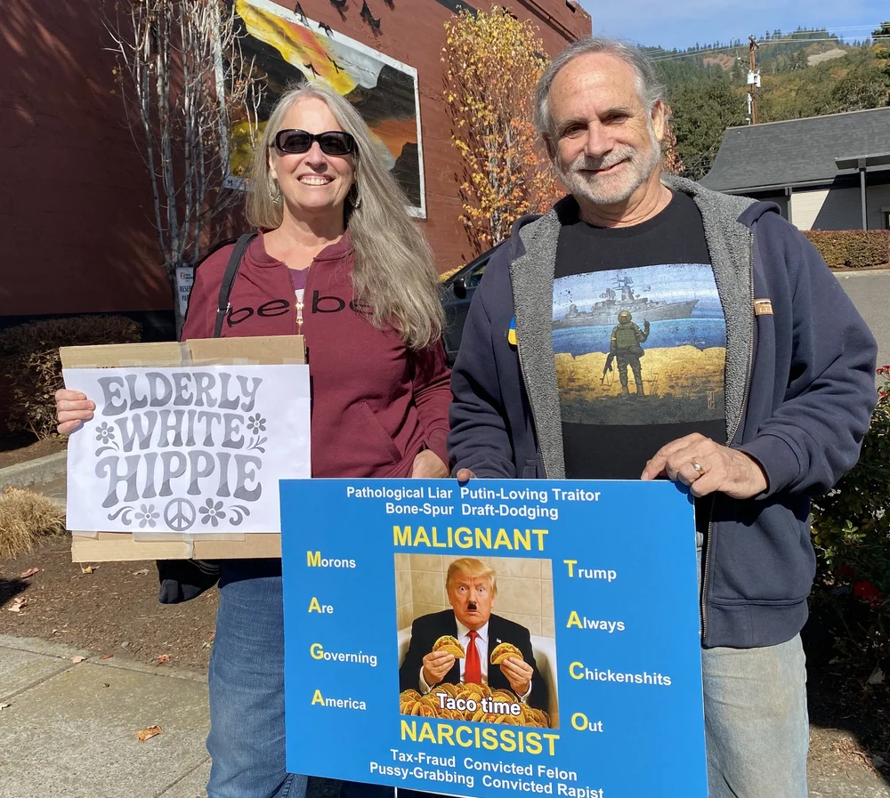 Many Protestors in The Dalles and Hood River were in full costume as they displayed their satisfaction with Trump Administration policies.