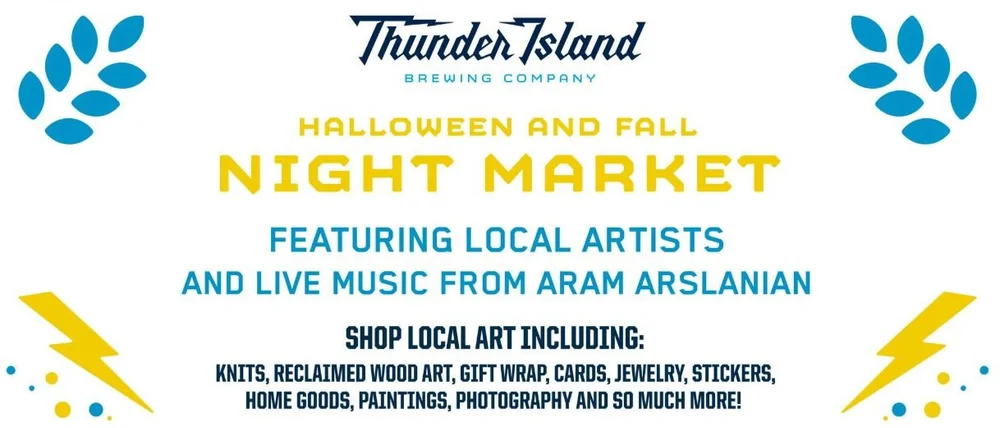 Halloween lovers can head to Thunder Island Brewing in Cascade Locks for a Fall & Halloween Night Market running 6–9 p.m., featuring local artists, vendors, and live music by Aram Arslanian.